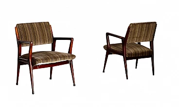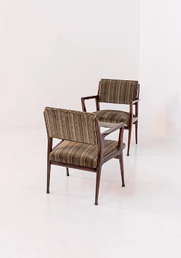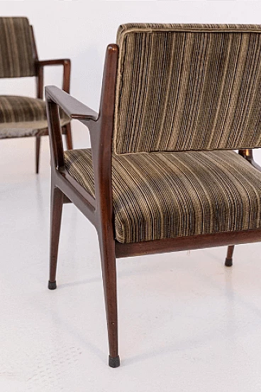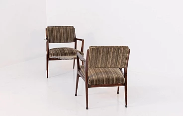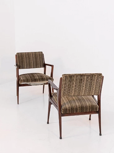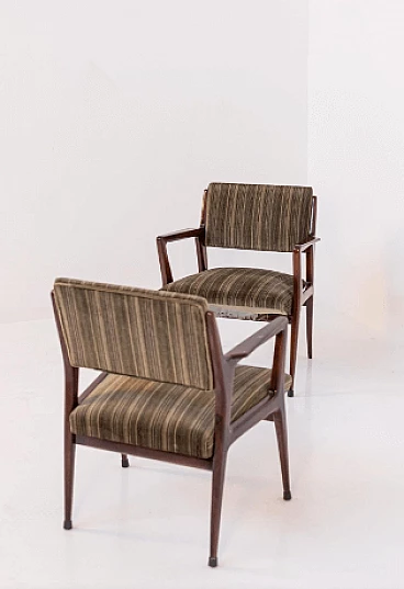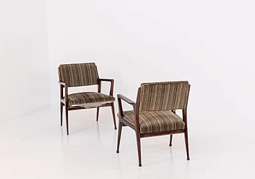 Coppia di poltrone in noce e velluto attribuite a Gio Ponti, anni '50