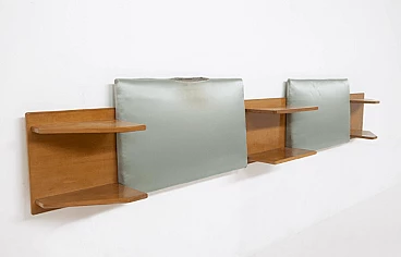 Testiera per due letti singoli in legno e tessuto, anni '50