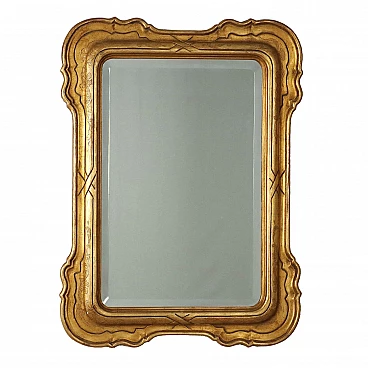 Specchio stile Umbertino realizzato nel '900. Cornice in legno intagliato e dorato decorato con elementi fitomorfi lavorati a bulino.