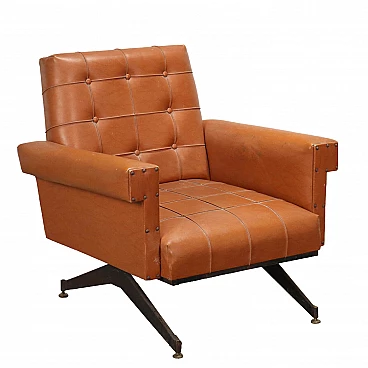 Poltrona con base in metallo e rivestimento in skai, anni '60