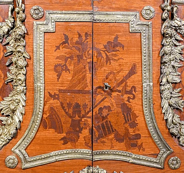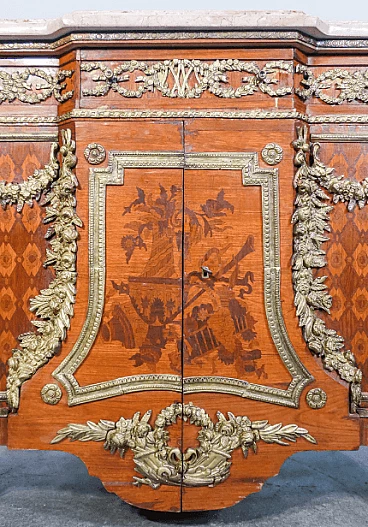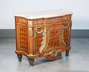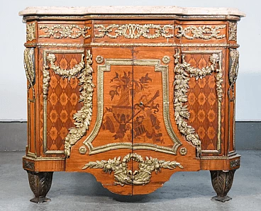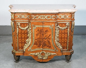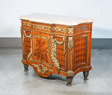 Jean Henri Riesner, comò stile Luigi XV in legno intarsiato con piano in marmo, inizio '900