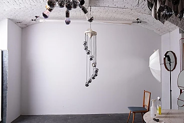Lampadario in acciaio cromato di Goffredo Reggiani, anni '60