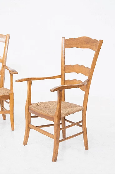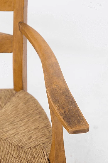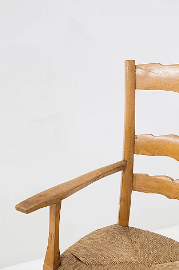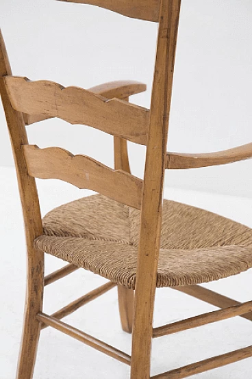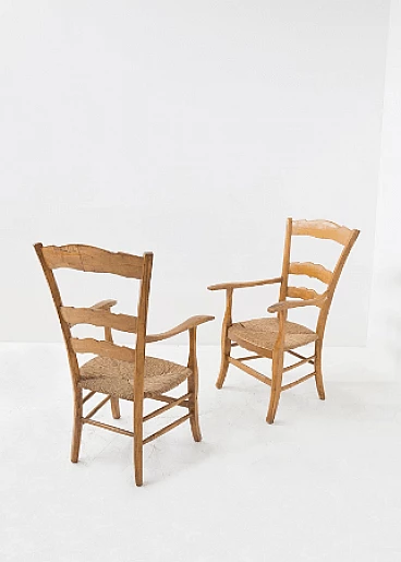 Coppia di poltrone in legno e paglia attribuite a Paolo Buffa, anni '40