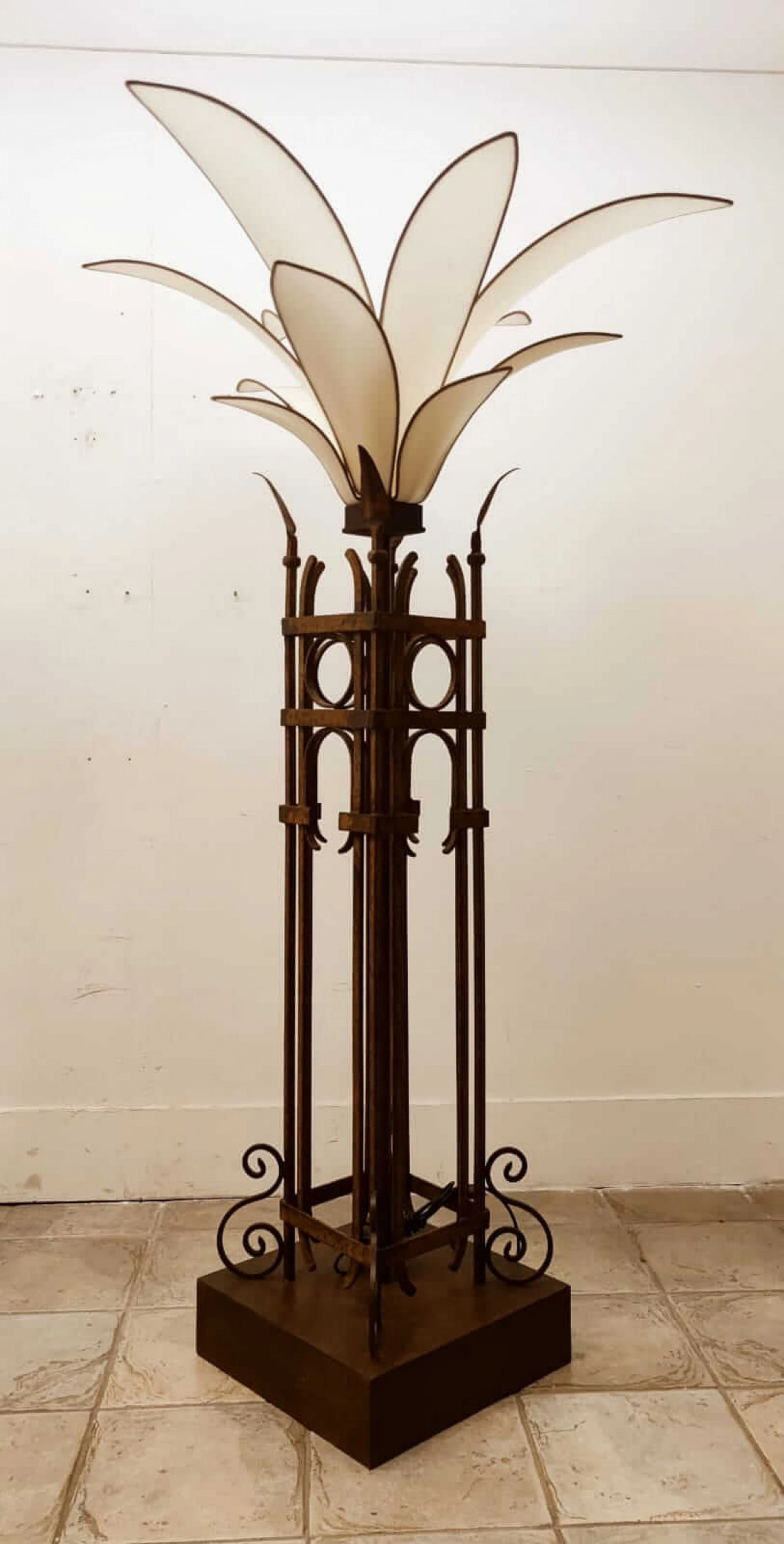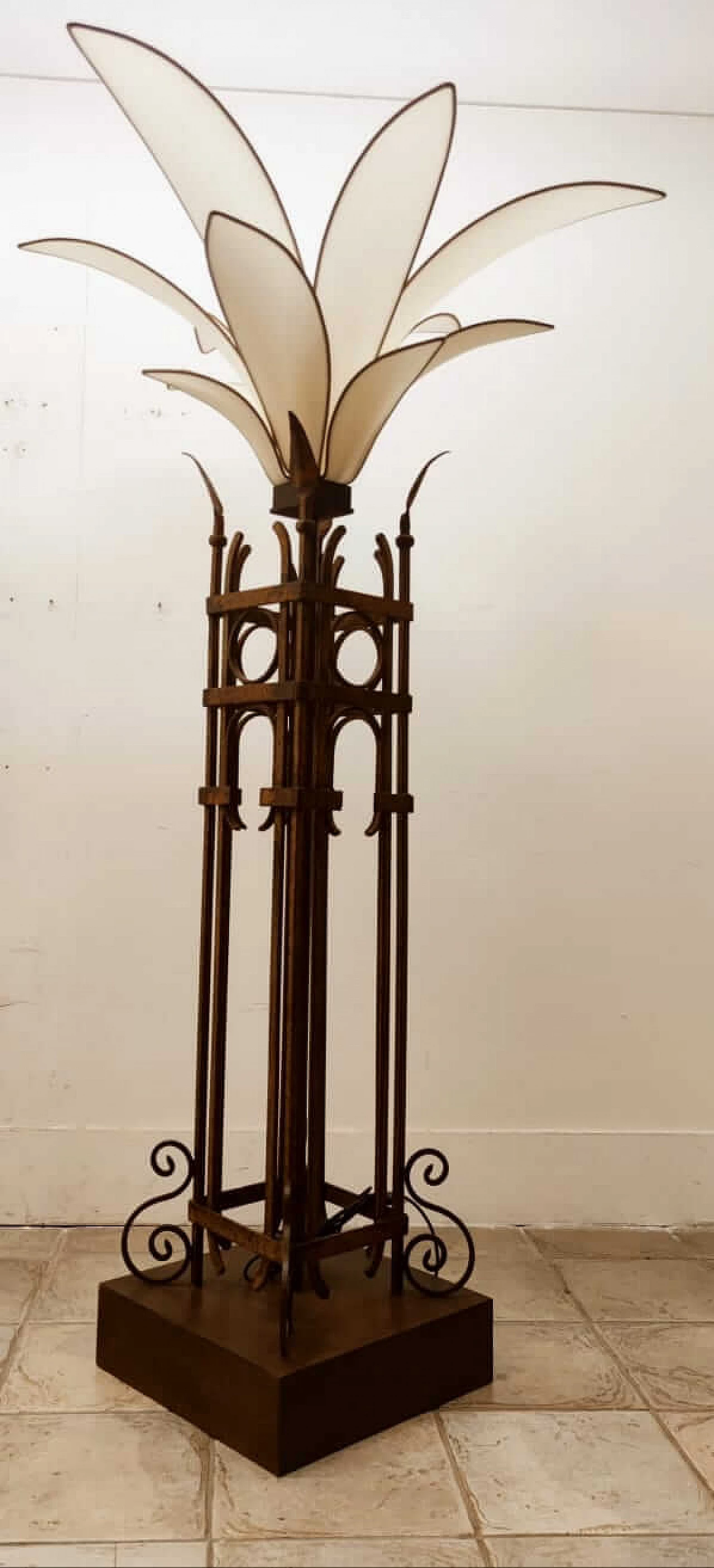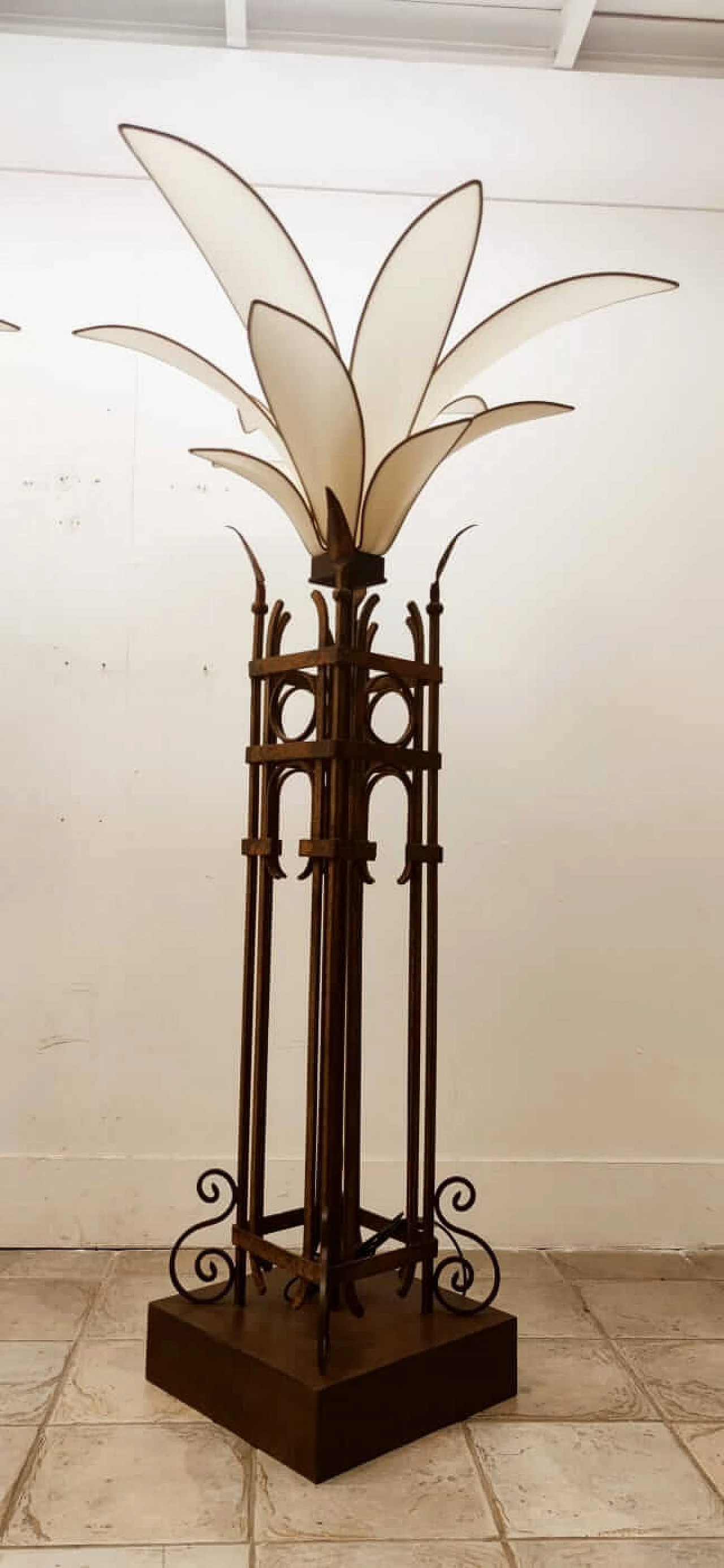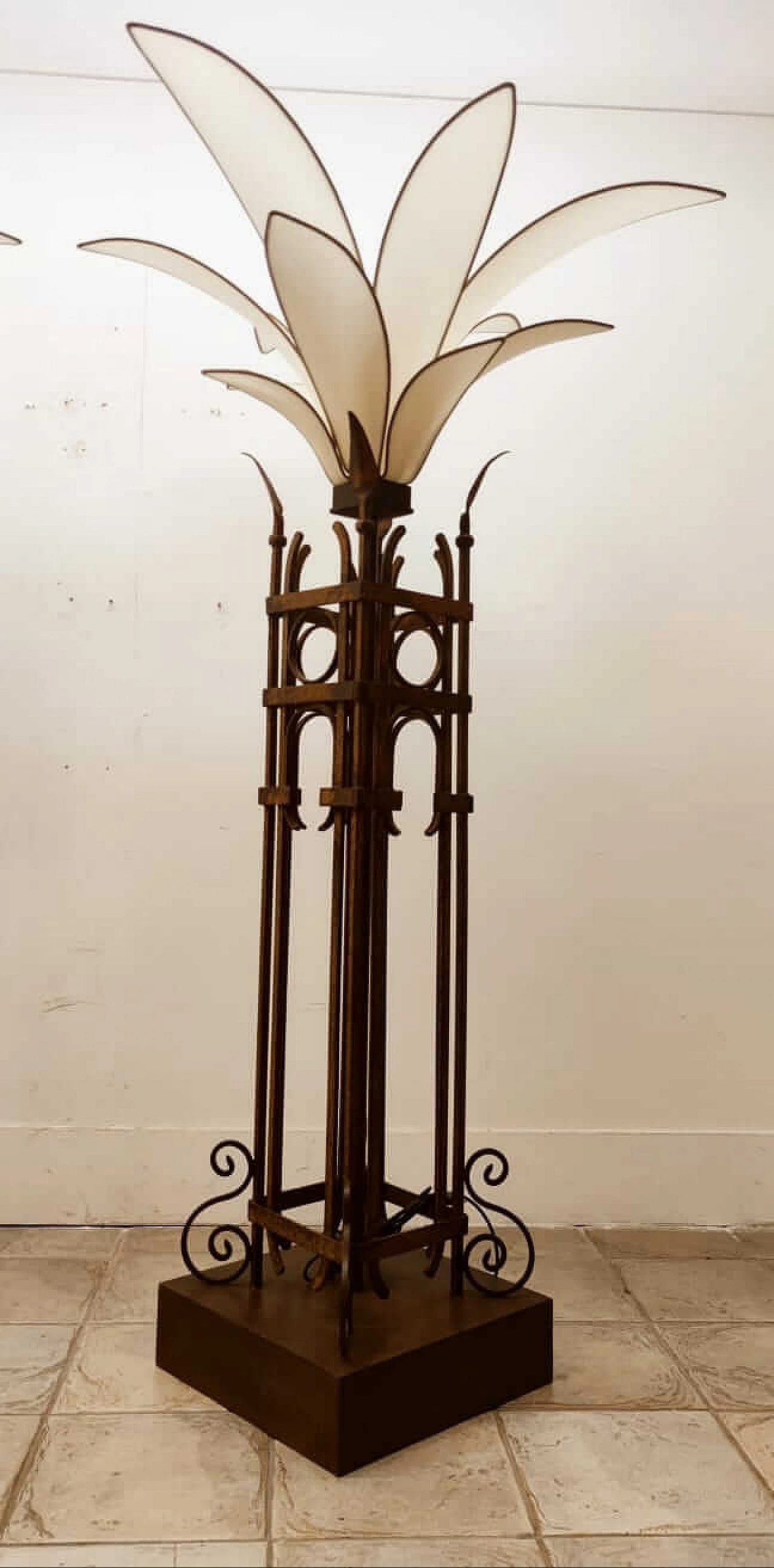 Piantana a forma di palma in ferro e stoffa, anni '60