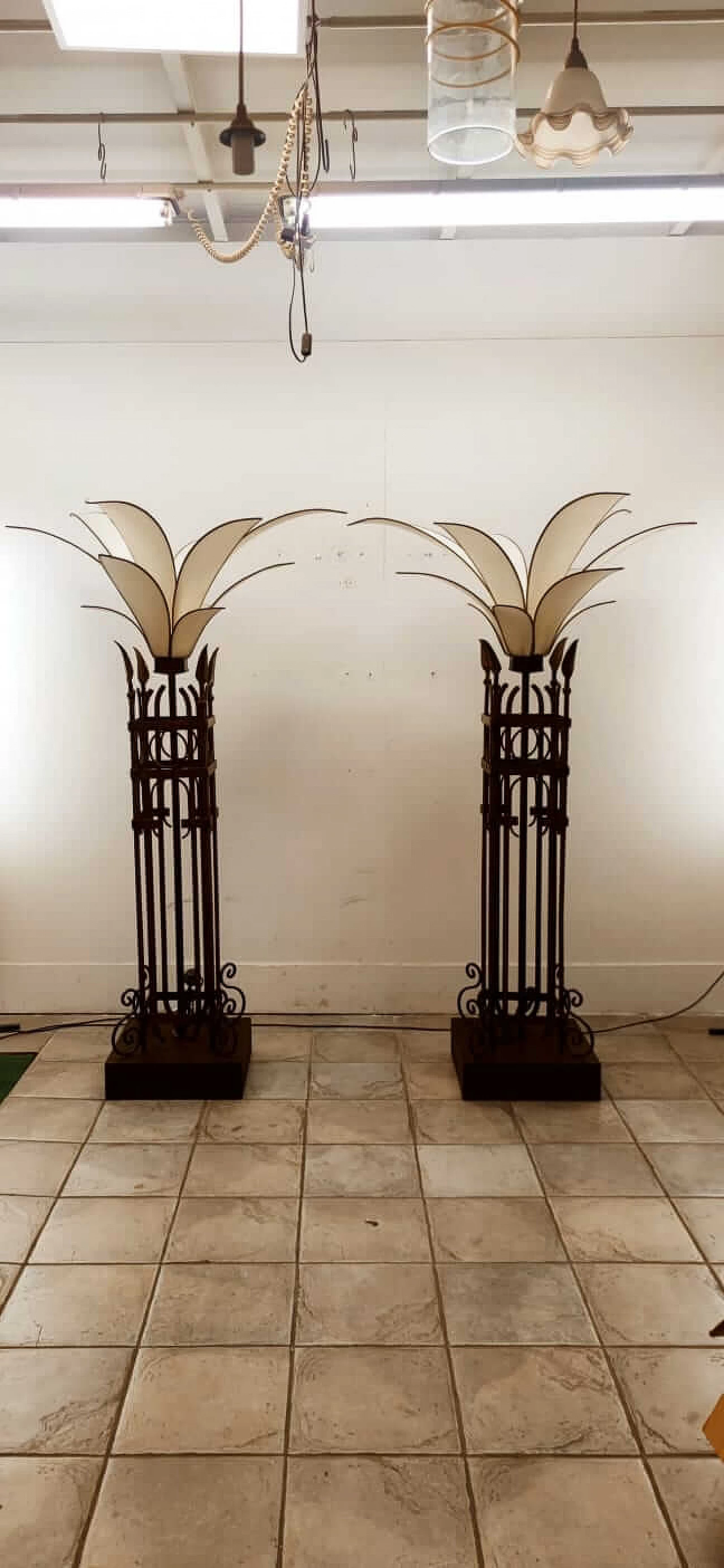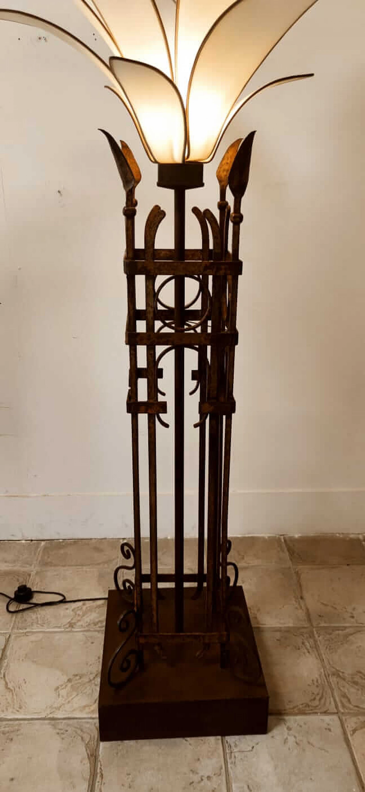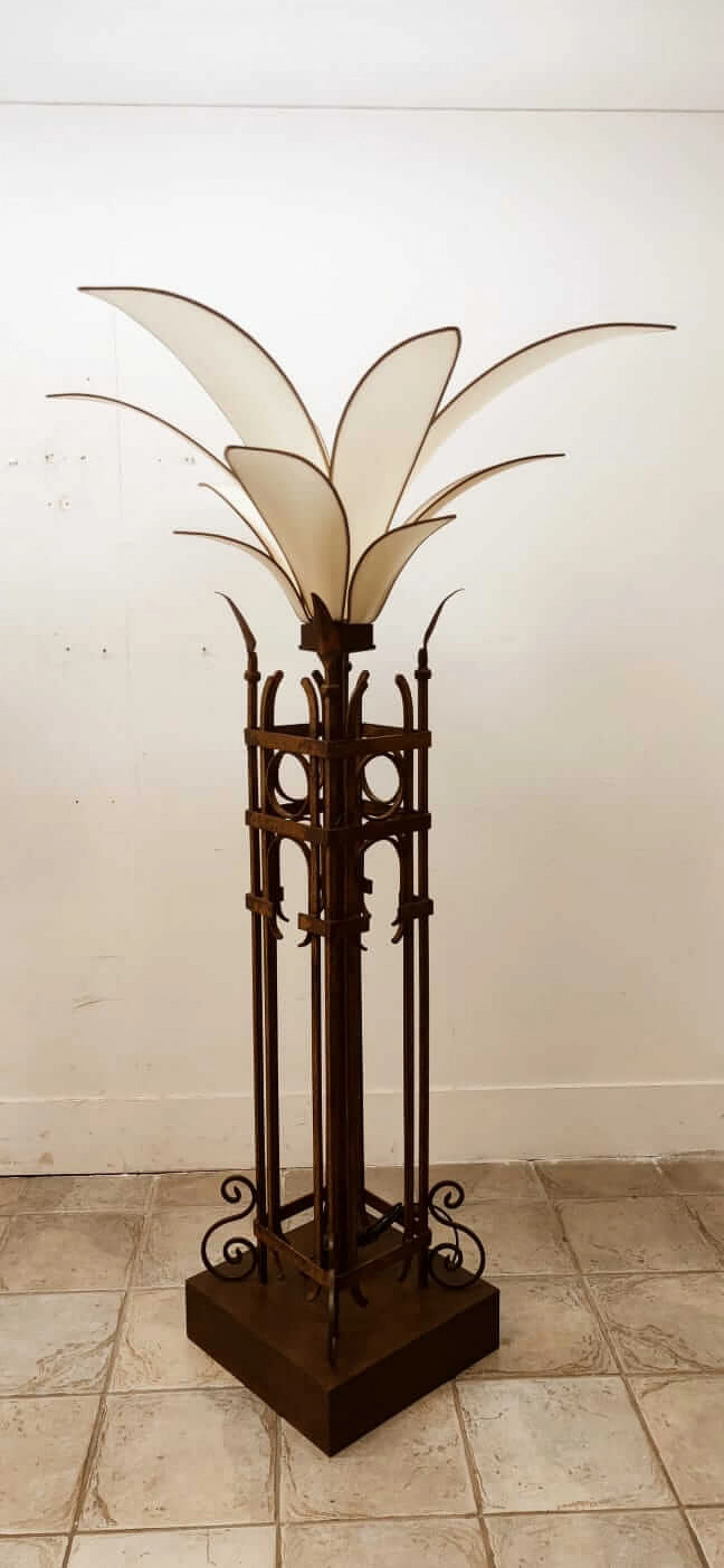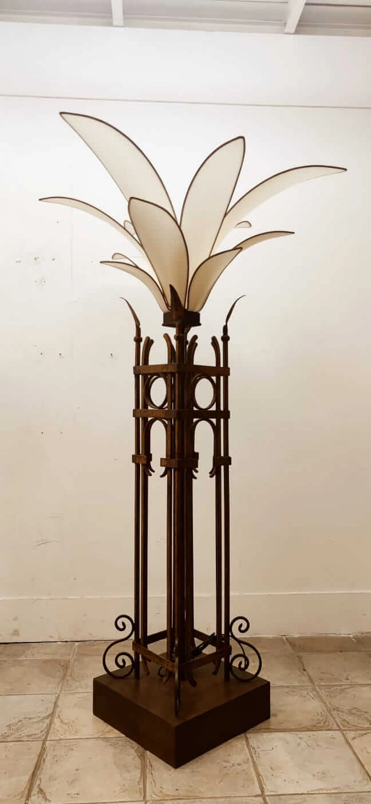 Piantana a forma di palma in ferro e stoffa, anni '60