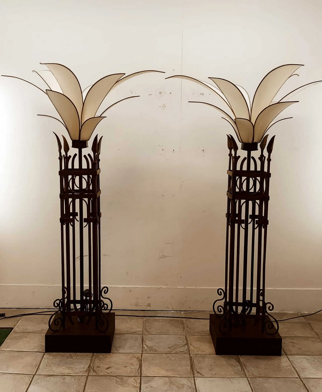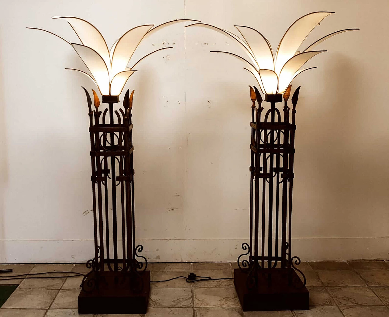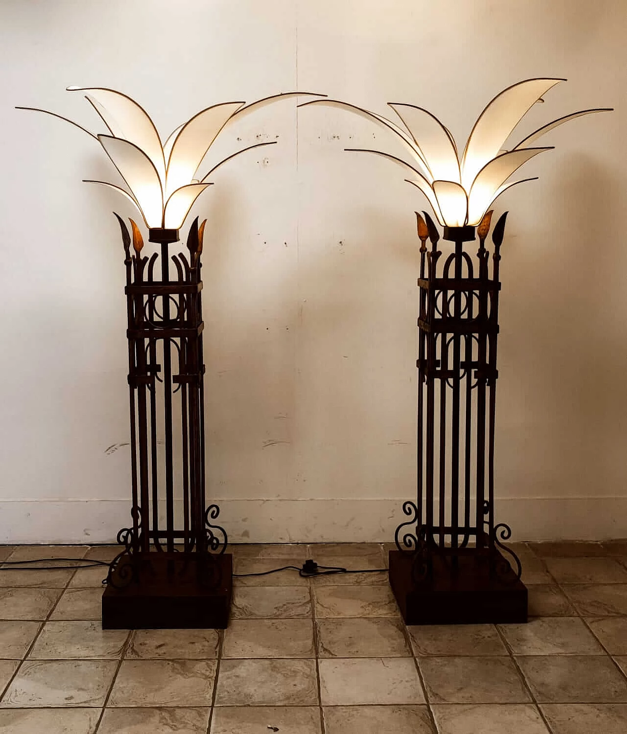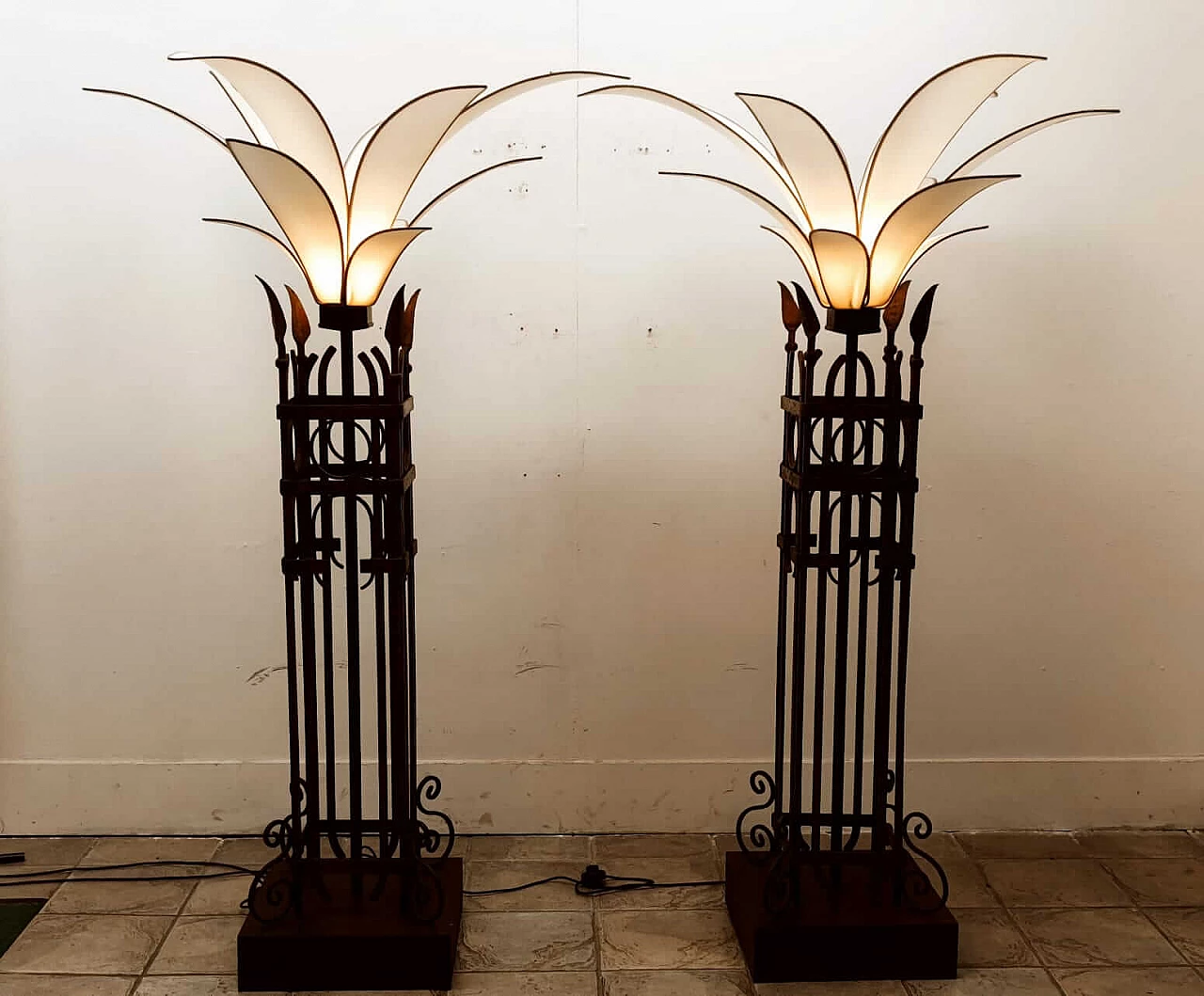 Piantana a forma di palma in ferro e stoffa, anni '60