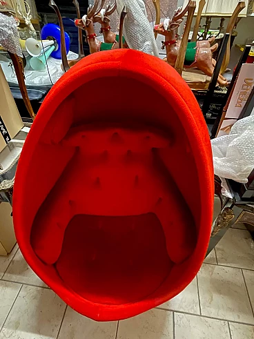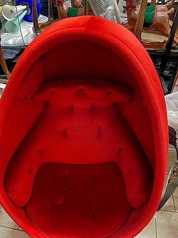 Poltrona girevole Uovo in velluto rosso di Philippe Starck, anni '70