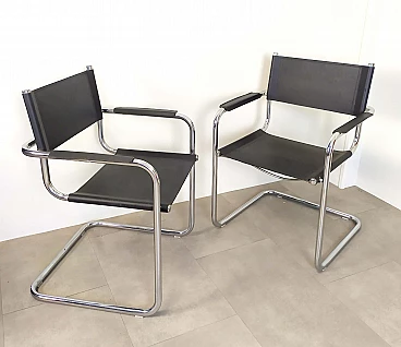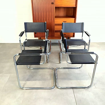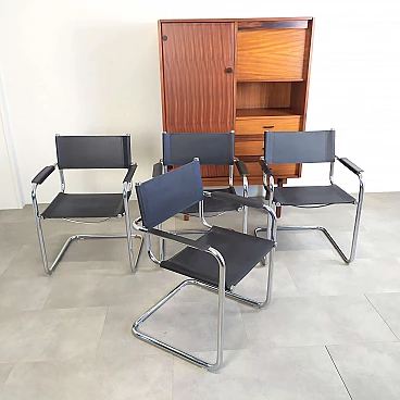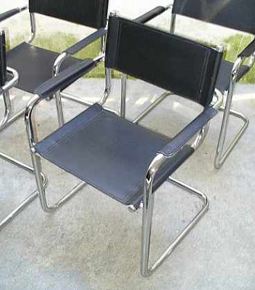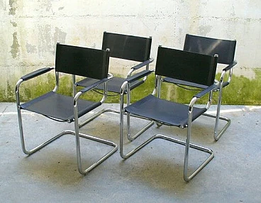 N.4 sedie in tubolare e finta pelle attribuite a Mart Stam, anni '70