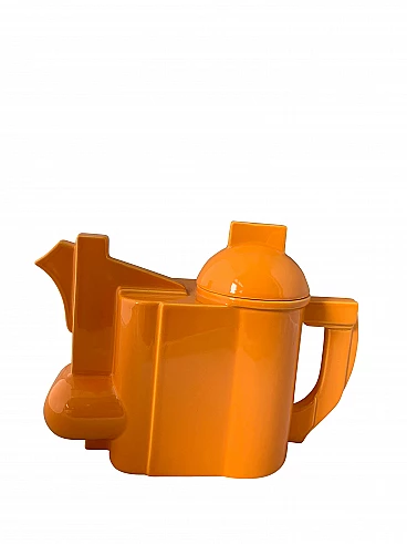 Teiera modernista in ceramica arancione di Kazimir Malevich per Cleto Munari, 2000