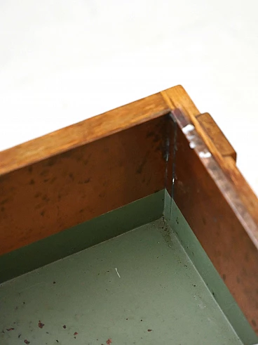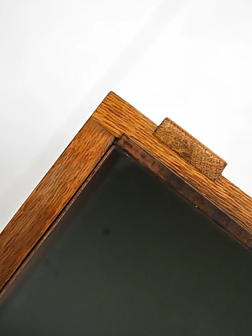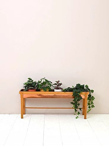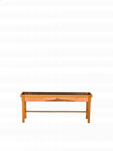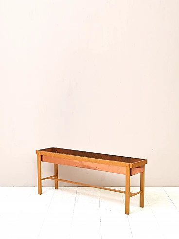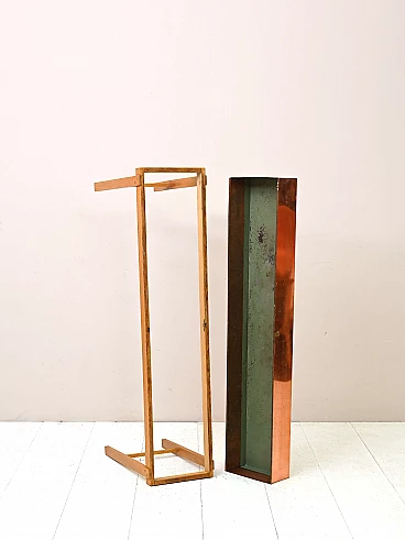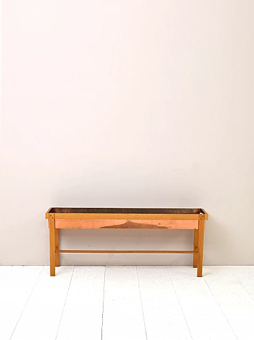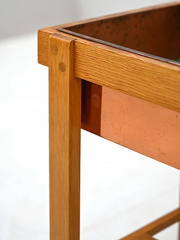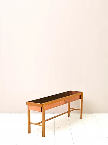 Fioriera con base in rovere e struttura in metallo ramato, anni '60