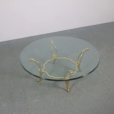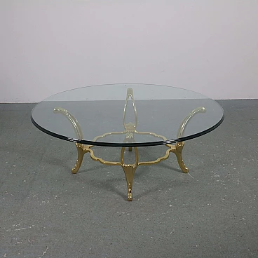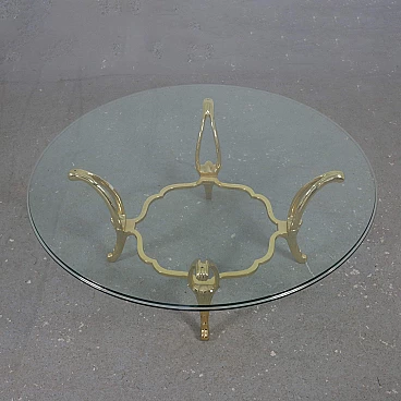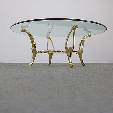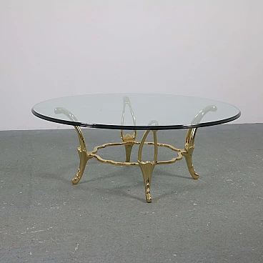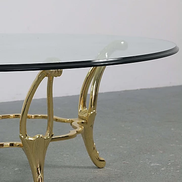 Tavolino da caffè in ottone molato e vetro, anni '80