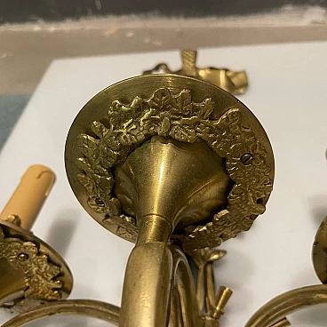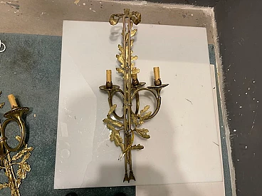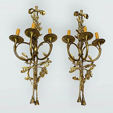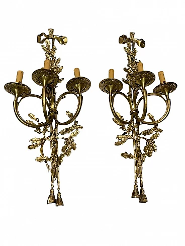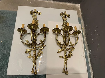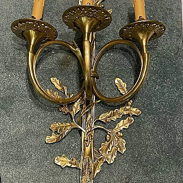 Coppia di applique in ottone con foglie di quercia, anni '70