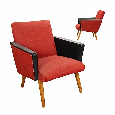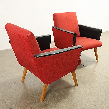 Coppia di poltrone in tessuto e similpelle, anni '60