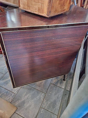 Il mobile poggia su gambe coniche in ferro tubolare nero con finiture e piedini regolabili in ottone. L'oggetto è in eccellenti condizioni, presenta alcune tracce di usura dovute al tempo e all'utilizzo. Dimensioni: H 70 cm, L 100 cm, P 50 cm.