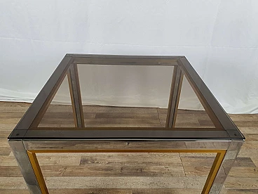 Tavolino quadrato in acciaio e vetro fumé di Renato Zevi, anni '70