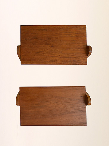 Coppia di tavolini in legno con doppio ripiano, anni '50