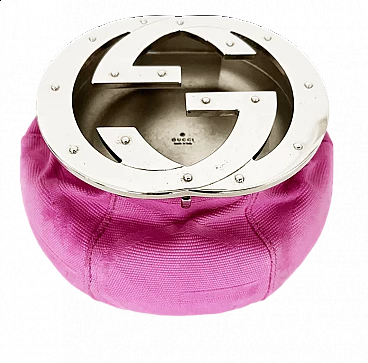 Posacenere Gucci in metallo e tessuto rosa, anni '90