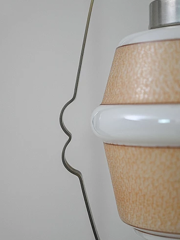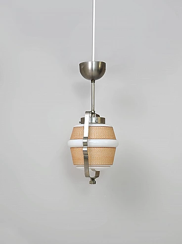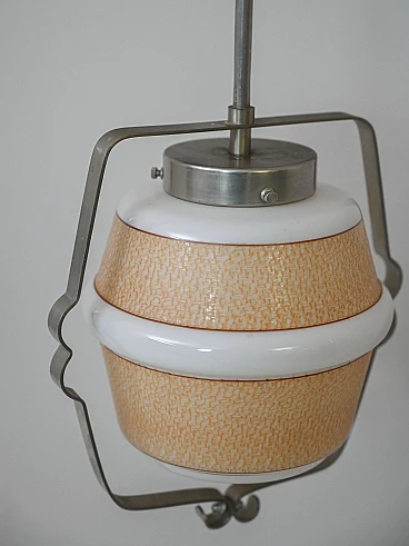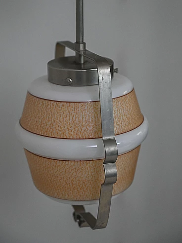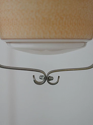 Lampadario in metallo con paralume in vetro dipinto, anni '30