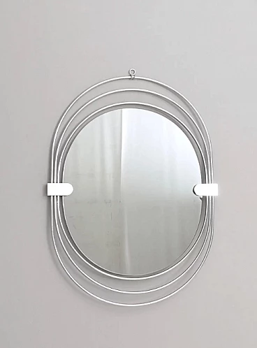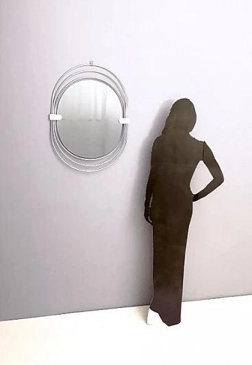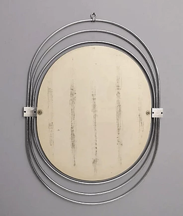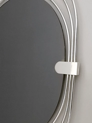 Specchio da parete fumé con tripla cornice in metallo cromato, anni '70