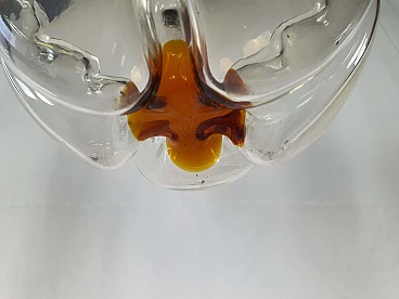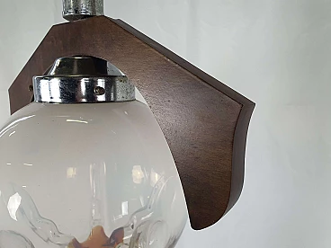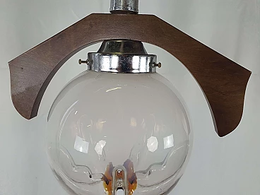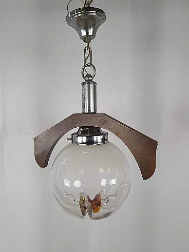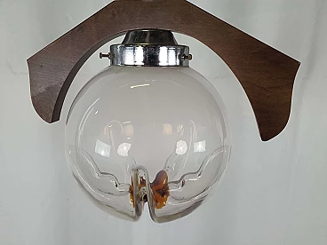 Lampadario in vetro, legno e acciaio di Mazzega, anni '70