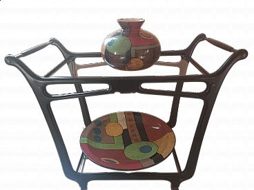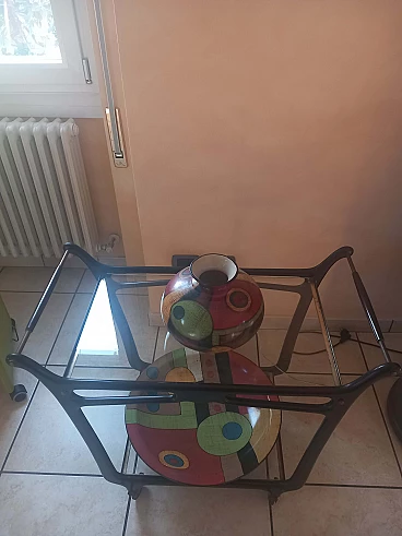 Carrello portavivande in mogano e vetro nello stile di Ico Parisi, anni '50