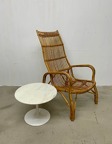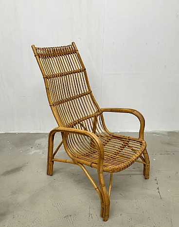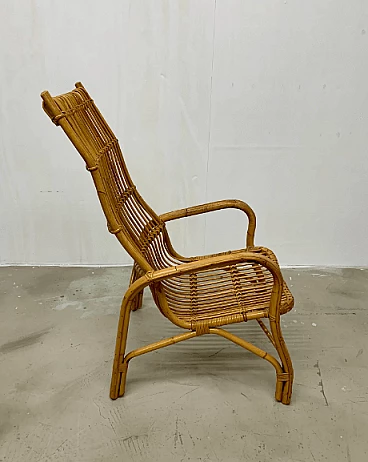 Poltrona in rattan con schienale alto, anni '60