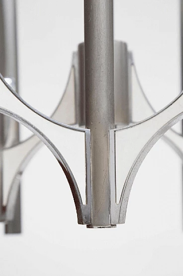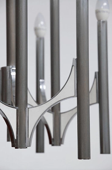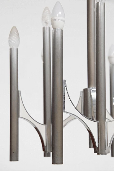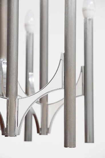 Lampadario a nove luci in acciaio di Gaetano Sciolari, anni '70
