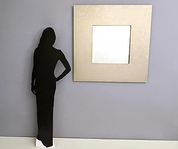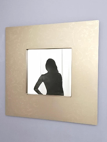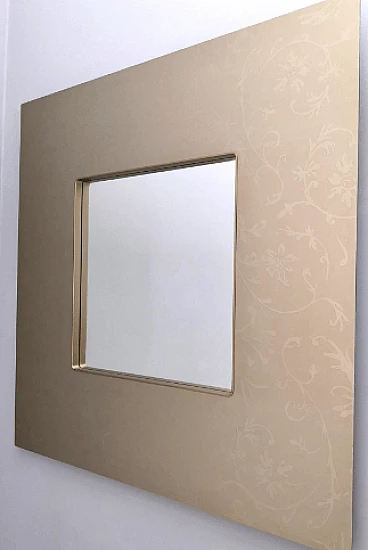 Specchio da parete quadrato con cornice in metallo, anni '80