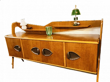 Credenza in legno con maniglie a forma di foglie, anni '50