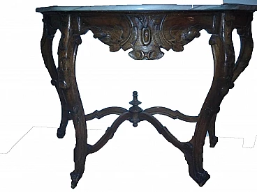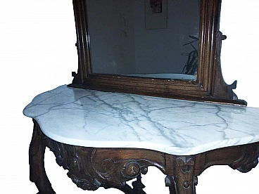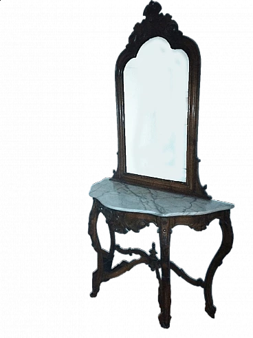 Consolle Luigi Filippo in noce con specchiera intagliata, '800