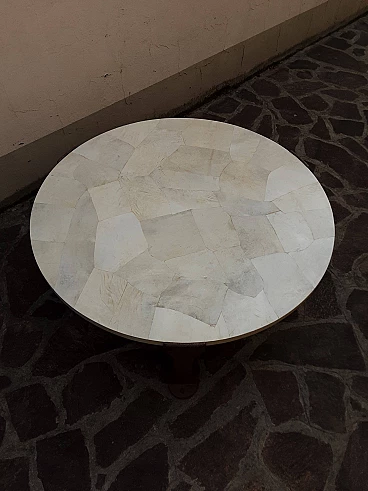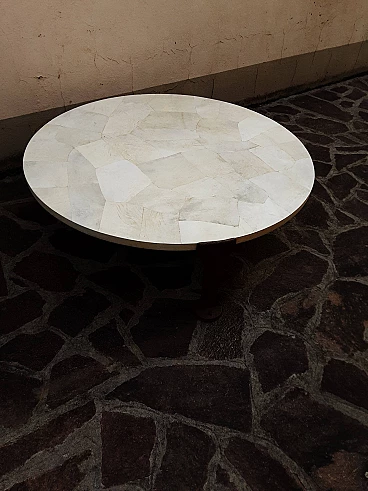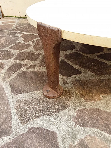 Tavolino rotondo in ferro, legno e pergamena, anni '80
