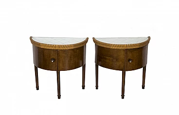 Comodini a semicerchio con piano a specchio, anni '50