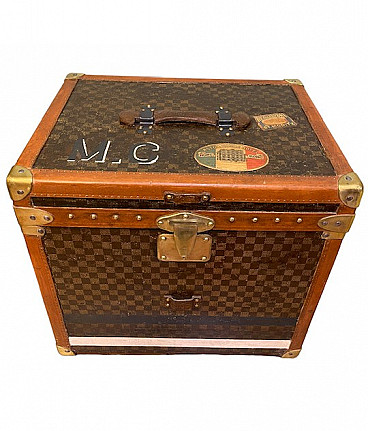 Baule da viaggio in tela, pelle e ottone di Moynat, inizio '900
