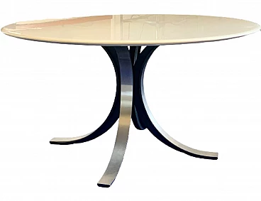 Tavolo T69 di Eugenio Gerli e Osvaldo Borsani per Tecno, anni '70. Struttura in metallo e piano in legno laccato avorio.