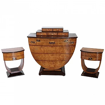 Comò e coppia di comodini in stile Art Déco, firmato Carpanelli