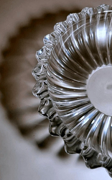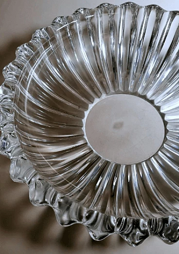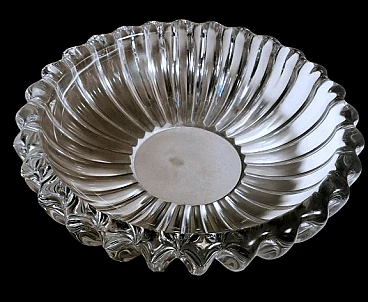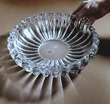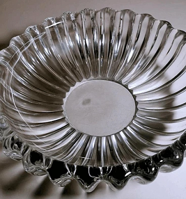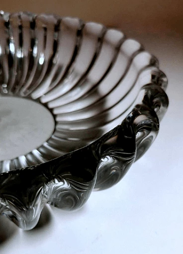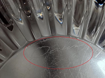 Ciotola/svuotatasche in vetro stampato. La sua forma è semplice e decisa, sapientemente proporzionata, frutto di un'intelligente riflessione estetica. La ciotola, in stile Art Déco, è stata prodotta a Nancy, in Francia, tra il 1930 e il 1935 dalla Daum Crystalworks su disegno di Pierre D'Avesn, un artista che all'epoca lavorava alla Daum Crystalworks, dove ha sviluppato la tecnica innovativa del vetro stampato, che si traduce in pezzi di straordinaria trasparenza e brillantezza come questa ciotola. La firma "Daum" è sul fondo della ciotola, anche se poco leggibile (vedi foto). Pierre d'Avesn è nato nel 1901. Inizialmente ha lavorato da René Lalique per dieci anni; durante questo periodo, ha progettato i famosi vasi Serpent e Tourbillons, due dei pezzi più costosi e ricercati di Lalique. Nel 1926 ha lasciato René Lalique e ha iniziato a creare i suoi modelli. Dal 1930 al 1936 è stato collaboratore della Daum Company; in seguito ha fatto produrre le sue creazioni alla Cristallerie de Saint-Remy. Considerato l'élite degli ultimi produttori di vetro Art Déco, è morto all'età di 90 anni. La vetreria Daum è stata fondata nel 1878 a Nancy, in Francia, da Jean Daum (1825-1885). Alla morte, i suoi figli, Auguste Daum (1853-1909) e Antonin Daum (1864-1931), hanno supervisionato in modo eccellente la crescita dell'azienda e sono diventati rapidamente una forza importante nel movimento Art Nouveau, rivaleggiando seriamente con Gallé. Nel 1906 Daum ha fatto rivivere la pasta di vetro, un antico metodo egiziano di fusione del vetro, sviluppando e perfezionando il processo, creando oggetti magnifici e originali. Nel 1937 la manifattura ha partecipato all'Exposition Internationale des Arts et Techniques di Parigi con opere in vetro monocromatico sempre più prive di decorazione e con una nuova linea di cristalli incolori scolpiti mediante molatura con sfaccettature che rifrangevano la luce o erano completamente lisce. Deportato dai nazisti, Paul Daum non ha fatto ritorno. Nel 1945, alla riapertura, i compiti di gestione dell'azienda sono stati assunti da Henri Daum (1889-1960), fratello di Paul, da Michel Daum (nato nel 1900), figlio di Antonin, e dai nipoti Jacques Daum e Antoine Froissart. È iniziata l'era del cristallo bianco trasparente dalle infinite forme armoniose, tirato a torsione e lavorato a pinza e modellato a mano, nello stile poi definito "anni '50". La ciotola qui proposta nasce in questo periodo vivace e innovativo. Ancora oggi Daum utilizza questo processo per produrre i suoi oggetti. Grandi artisti hanno collaborato alle opere della compagnia francese, tra cui Dalì, Cèsar, Roger Tallon, Arman, Hilton McConnico. Con i suoi 140 anni di vita, Daum continua a scrivere la sua storia e quella del cristallo. Ciotola in buone condizioni, solo la parte inferiore della base, logicamente, ha molti graffi (vedi foto) dati dal suo uso prolungato; ha anche una piccola opacizzazione al centro.