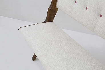 Coppia di panche in noce e tessuto bouclé, anni '50