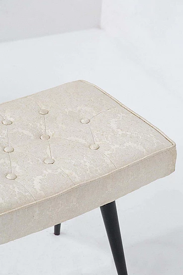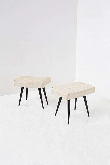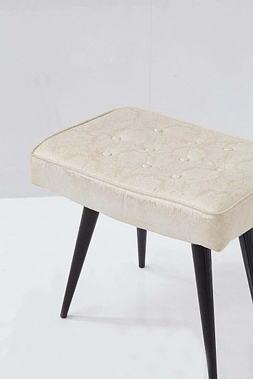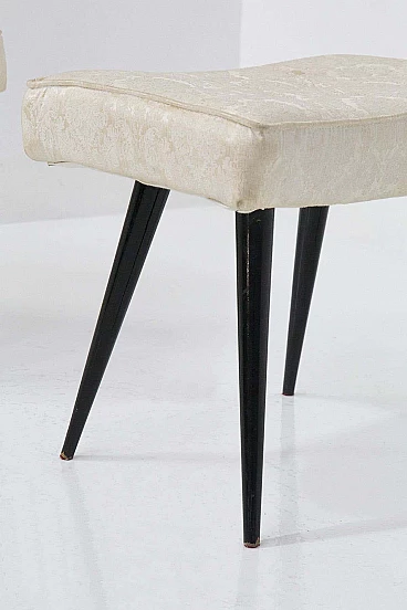 Coppia di sgabelli in legno e tessuto broccato, anni '50