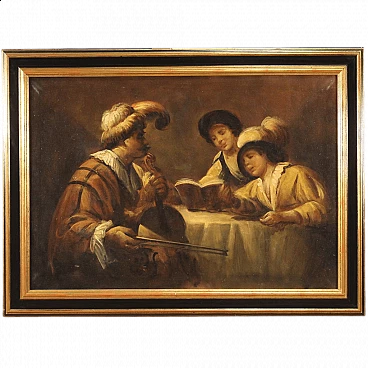 Dipinto italiano raffigurante la Lezione di Musica, olio su tela