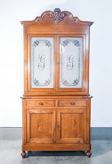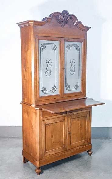 Credenza Carlo X con vetrina e piano estraibile, '800