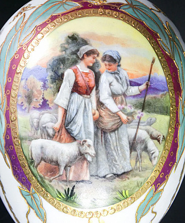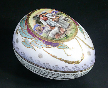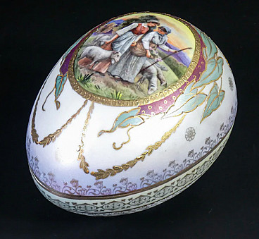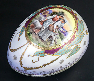 Scatolina a uovo in ceramica di Sèvres dipinta
