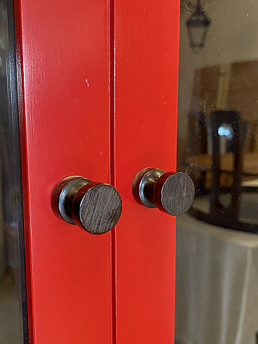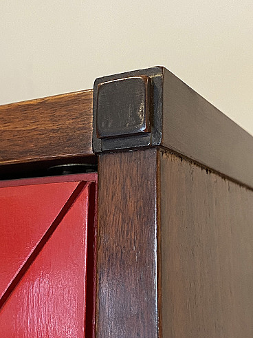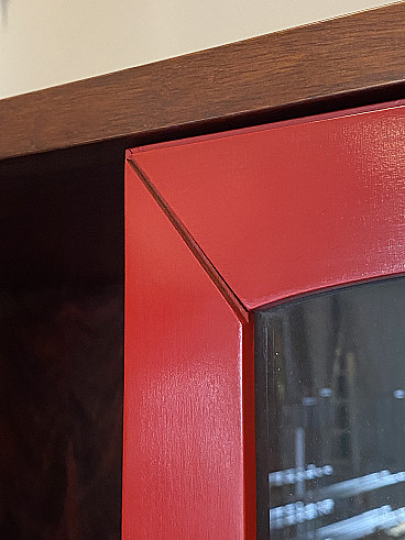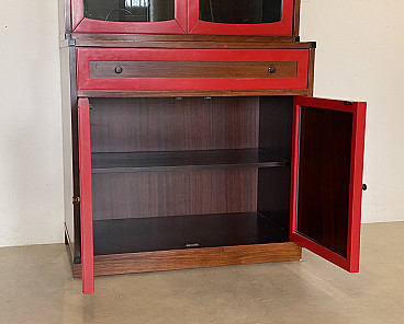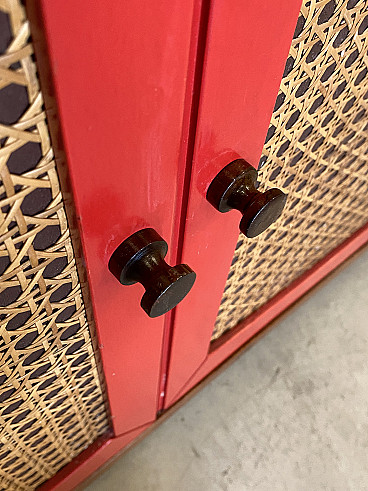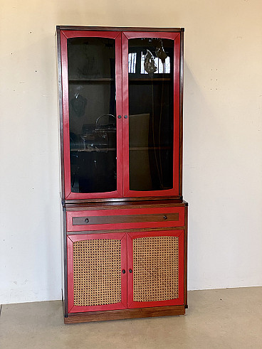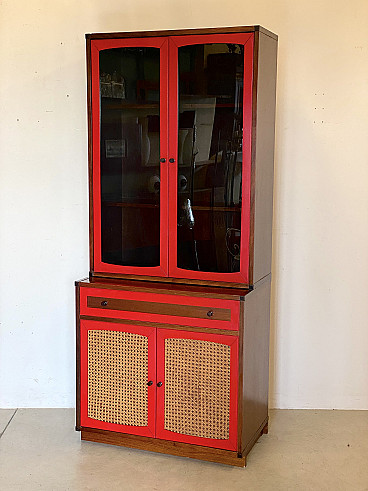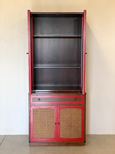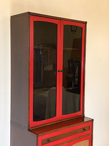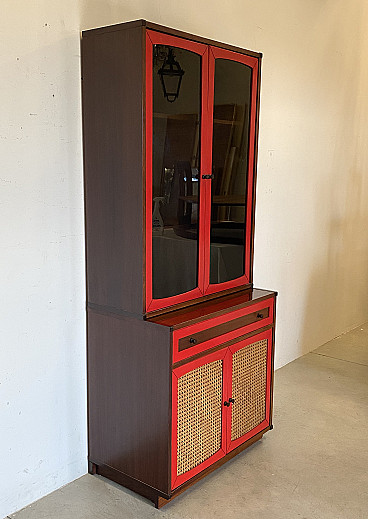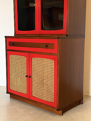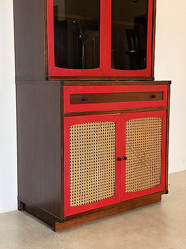 Credenza con vetrina in legno e paglia di Vienna, anni '60