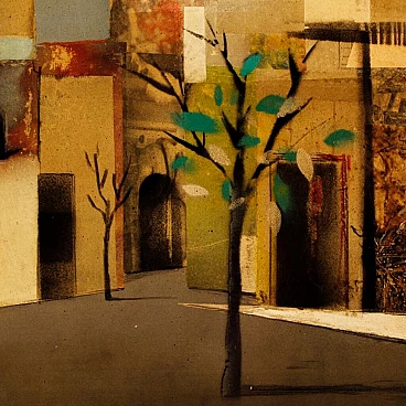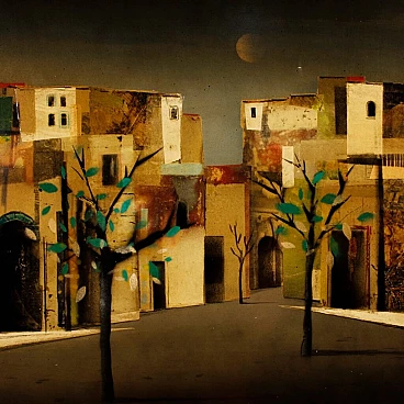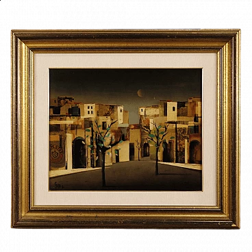 Carlo Maria Giletti, Case, dipinto a tecnica mista su masonite, 1980