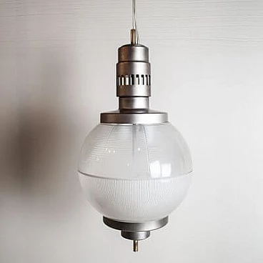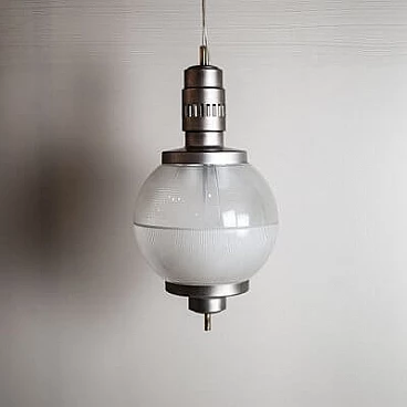 Lampada a sospensione in alluminio e vetro di Sergio Mazza, anni '60