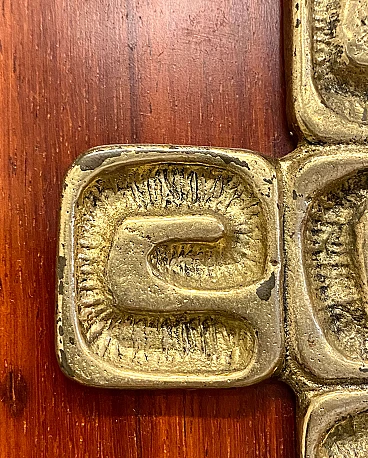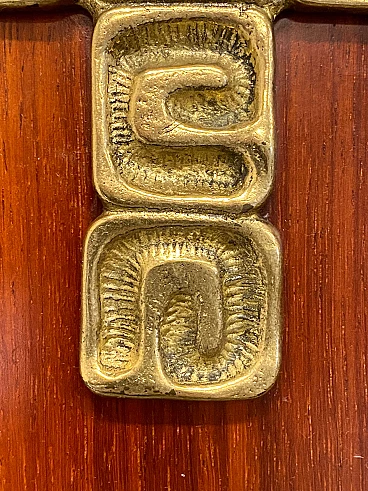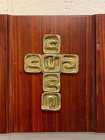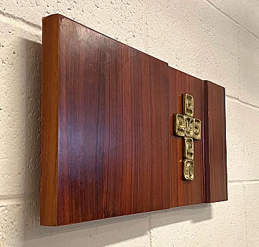 Pannello in palissandro con crocifisso in bronzo cesellato di Luciano Frigerio, anni '60