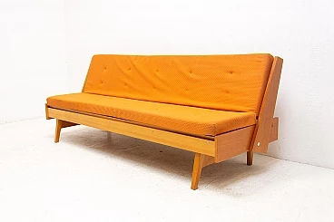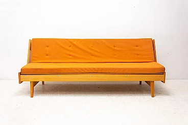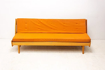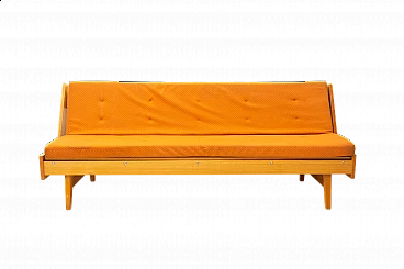 Divano letto pieghevole in faggio impiallacciato, anni '60