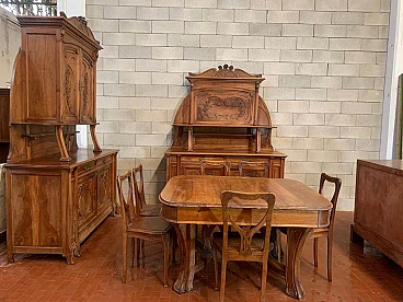 Set per sala da pranzo in ciliegio Art Nouveau di Pierre Mathieu, inizio '900