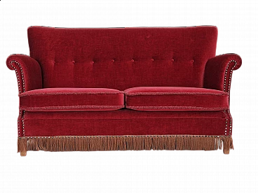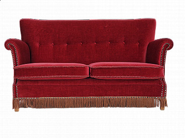 Divano a due posti in velluto rosso ciliegia, anni '50