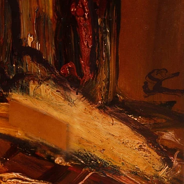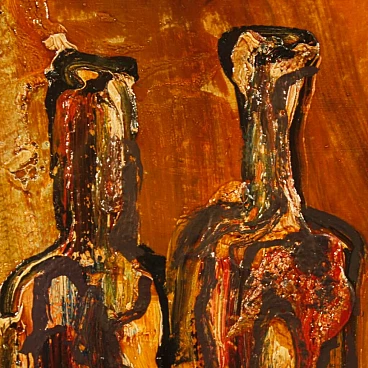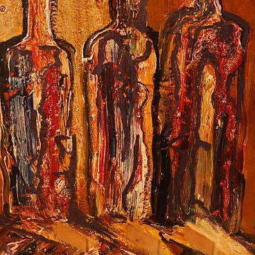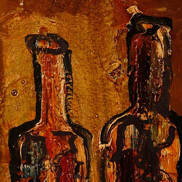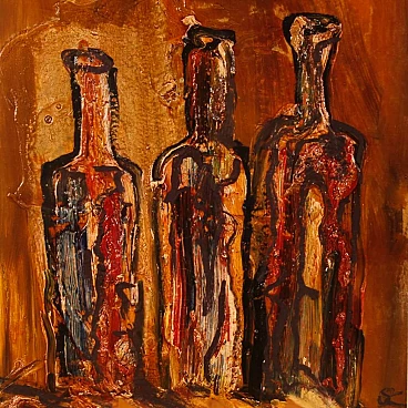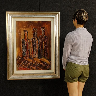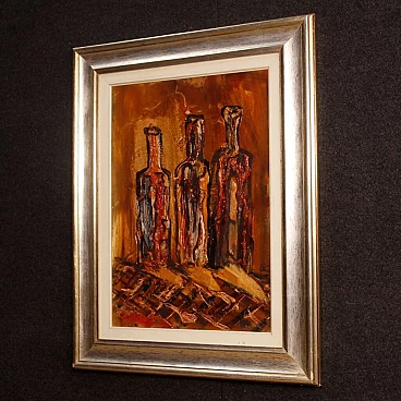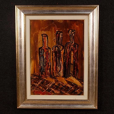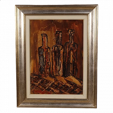 Natura morta con bottiglie, dipinto a tecnica mista su cartoncino