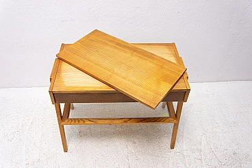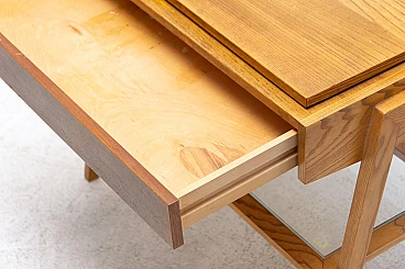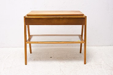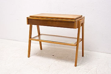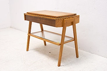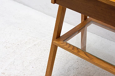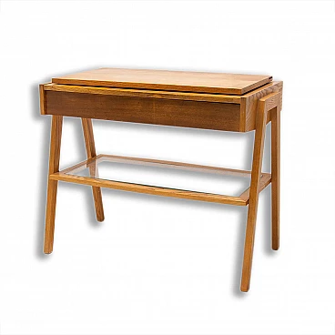 Tavolino da TV in frassino e vetro con piano girevole, anni '60